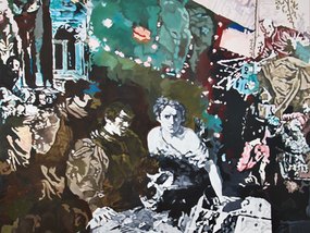 Ces transports spatio-temporels et l’effet de brouillage ressenti par l’enchâssement des décors hétérogènes constituent proprement la spécificité visuelle du travail que poursuit la peintre depuis une vingtaine d’années.