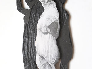 L’Étreinte des ruines offre un voyage enchanteur, tissant des énigmes entre le passé et le présent, dévoilant des compositions oniriques où le minéral et le vivant s’entremêlent. Témoin de ce dialogue intemporel entre le passé et le présent, le dessin sur bois « L’étreinte du présent » (2019), dévoile le visage d’une statue marqué par le lichen. La nature vient ici cohabiter avec le minéral, laissant entrevoir le passage du temps. Anne Touquet, en cherchant à insuffler vie à des corps indistincts, oscille entre le figé, le sculpté et le pétrifié, entre la pierre et l'humain.