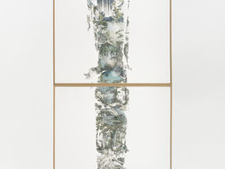 C’est à ce moment précis que l’on peut quitter le rivage et s’introduire dans l’infinie minutie de ses sous-bois foisonnants qui se dévoilent à la manière de paysages fantastiques. S’ils peuvent évoquer les imageries pittoresques de la découverte du Nouveau Monde, ils réussissent à transcender cette esthétique illustrative pour nous embarquer dans un voyage nourri de la légèreté des images du monde flottant de l’art japonais. De grande taille, les dessins se déploient à la manière de kakémonos ou de membranes vivantes. Iles mouvantes, jouant de l’équilibre subtil entre pleins et vides et embarquant avec elles un imaginaire puisé dans la jungle indienne qui fascine l’artiste depuis 20 ans. Et si nous étions restés au bord au début, nous y tombons désormais, ou plutôt, nous y succombons. En effet, leurs rivages, à savoir leurs contours, sont irréguliers, incertains, difficile à circonscrire. Sans cadre. Des élections libres, des intériorités impermanentes. « A l’intérieur de la jungle, en Inde, c’est un sentiment océanique qui m’a envahi, tel que celui énoncé par Romain Rolland et Freud » confie-t-elle, décrivant une puissante connexion de son corps avec la nature. « Cela s’est passé comme une naissance, ou une renaissance au monde. » Nous voilà dedans nous aussi, immergés dans ces ailleurs aux multiples feuillages où apparaissent d’incessantes paréidolies. Singes, oiseaux, personnages… ? On ne se lasse pas de la méticulosité du trait qu’elle appose à l’encre et qu’elle colorie et estompe avec du fard à paupière. Nul hasard que l’on soit alors séduit par ces atours. « Je maquille le monde » dit-elle en riant. La feuille de papier devient la seconde peau de l’artiste sur laquelle elle explore les cités d’or que recèle le paysage. Comme un perpétuel renouvellement de l’éphémère qu’on a tant aimé et dont on s’aperçoit, une fois qu’il a disparu, que c’était l’image latente du bonheur. Les dessins d’Hélène Muheim se tiennent ainsi, fragiles et délicats, sur cet entre-deux entre beauté éphémère et image rémanente, persistante. Dans la grande tradition des artistes voyageurs romantiques, qui aimaient peindre les détails du monde, elle nous offre, dans cette nouvelle exposition, sa poétique de l’ailleurs, suspendue entre deux-mondes, le mémoriel et l’imaginaire, jamais vraiment figée, nous laissant au bord, dans une contemplation doucement inassouvie.